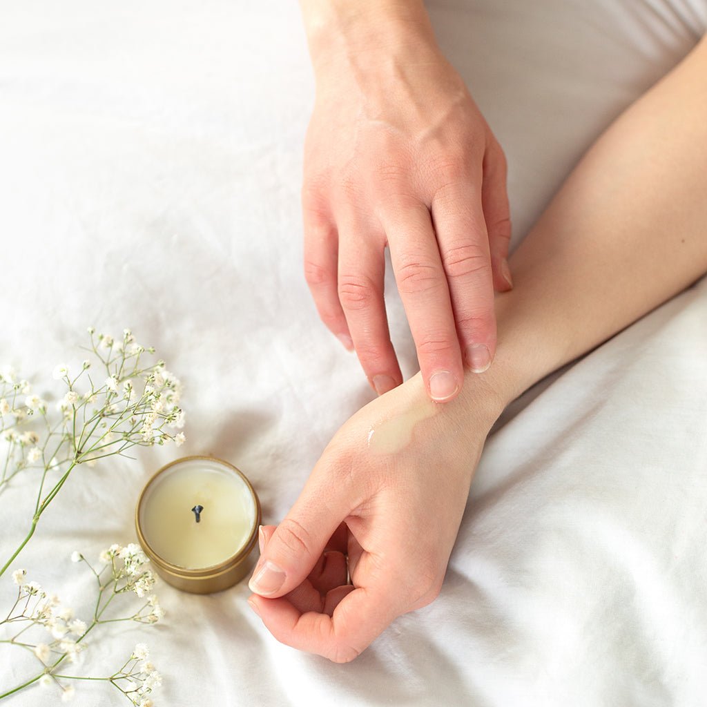 Non-GMO Soy Oil, Apricot Kernel Oil, Organic Jojoba Oil, Organic Coconut Oil, proprietary blend of essential oils, Vitamin E.